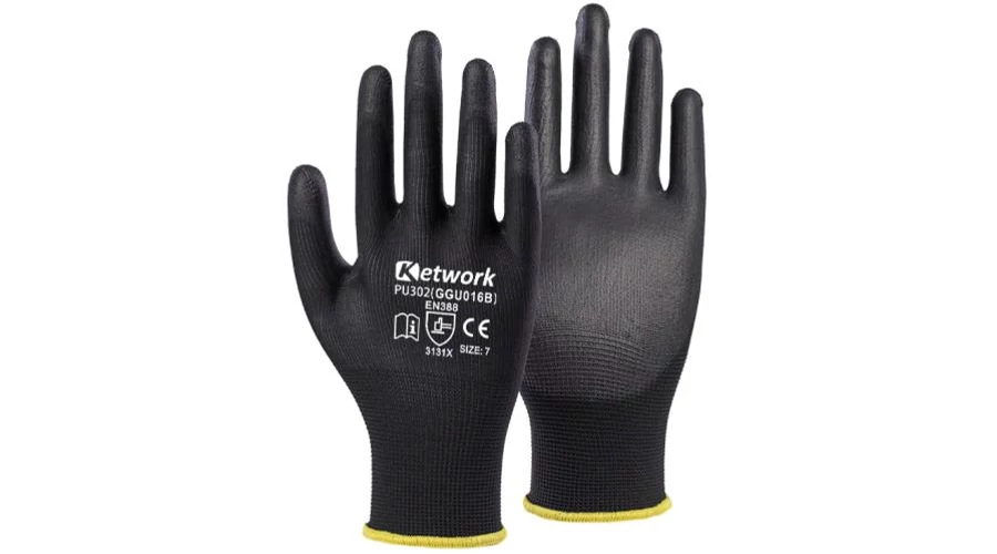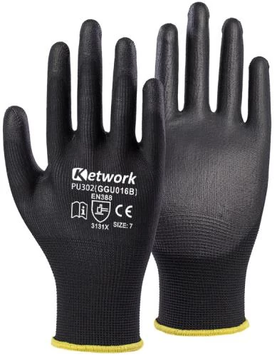 KET GGU016B (PN8003, PU302) Tenyérmártott POLIURETÁN szerelő kesztyű fekete 7-11-ig