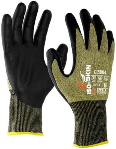 Lanzi GIS884 Hőálló, Vágásbiztos, Antisztatikus Hi-Foam 1/2 mártott preciziós szerelő kesztyű (fekete-okker) 6-11-ig