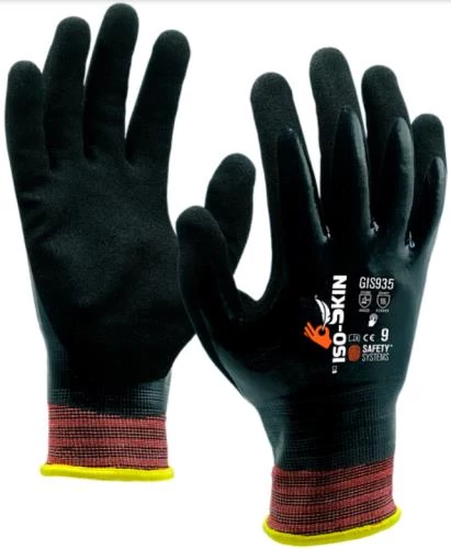 Lanzi GIS935 Hőálló vágásbiztos 1/1 mártott szerelő kesztyű, PU - nitril - nitrilhab bevonattal homokszórt felülettel (fekete-bordó) 6-11-ig