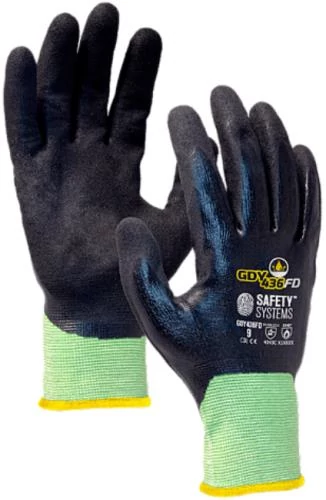 Lanzi GDY436FD Hőálló vágásbiztos 1/1 duplán mártott szerelő kesztyű nitril - homokszórt nitrilhab felülettel (fekete-zöld) 6-11-ig