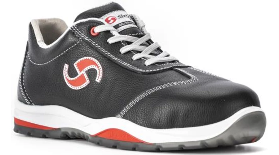 SIXTON DANCE S3 Fekete bőr munkavédelmi félcipő piros reflex 35-48-ig