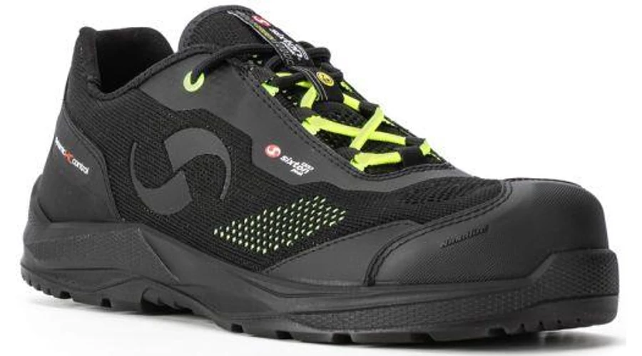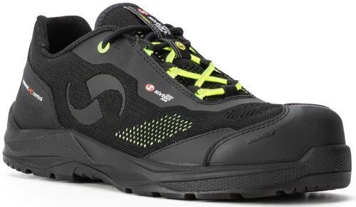 SIXTON XENO S3S FO SR ESD Extra könnyű munkavédelmi félcipő fekete, zöld reflex D3O talpbetéttel 35-48-ig
